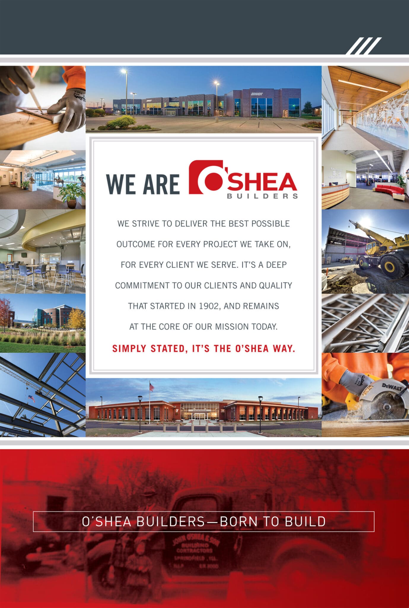 Jump developed a brand strategy including new brand positioning, logo identity and brand image design and launched it throughout O’Shea’s market area. The result was a new look that matched the growing company’s reputation for quality construction, innovation and professionalism.